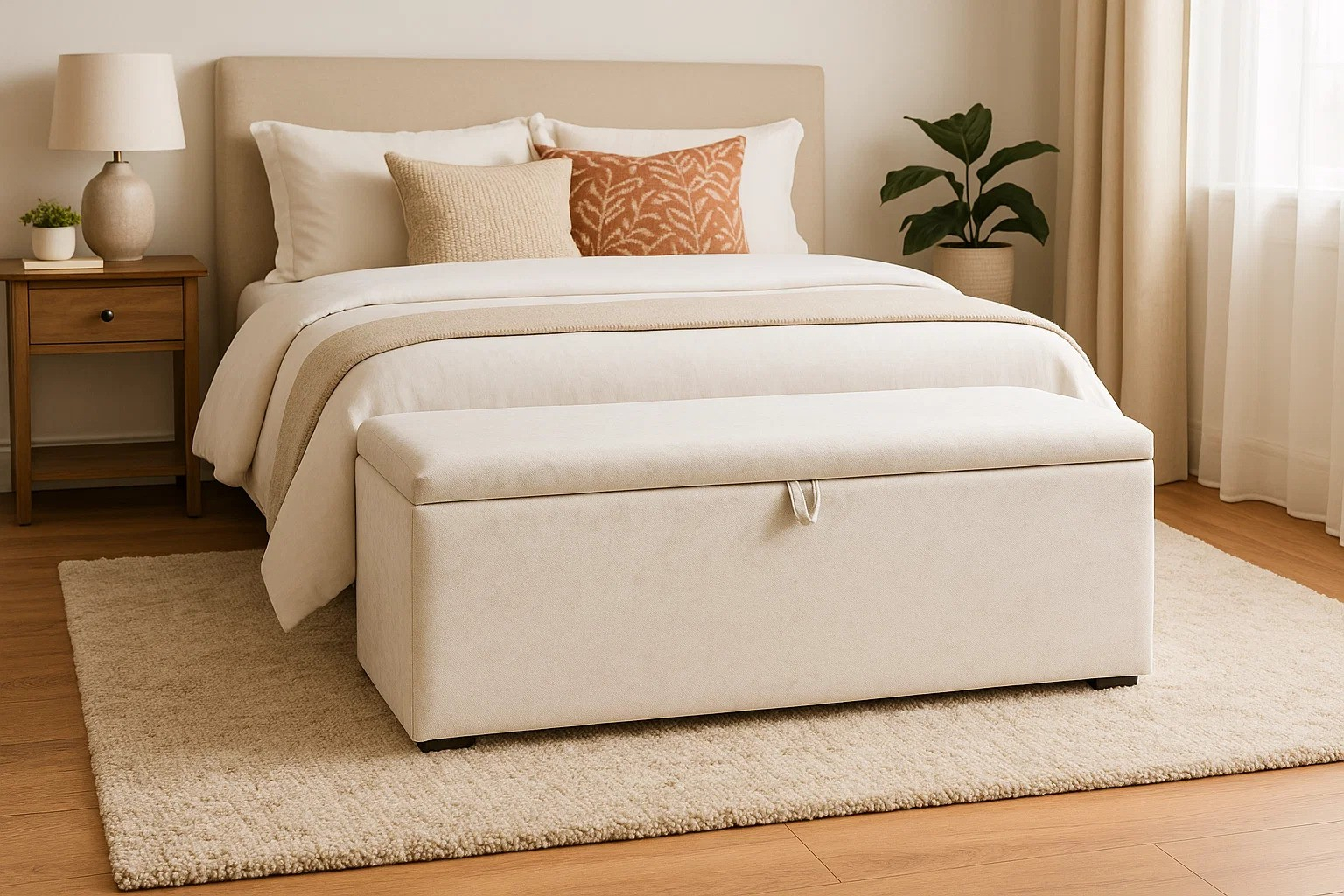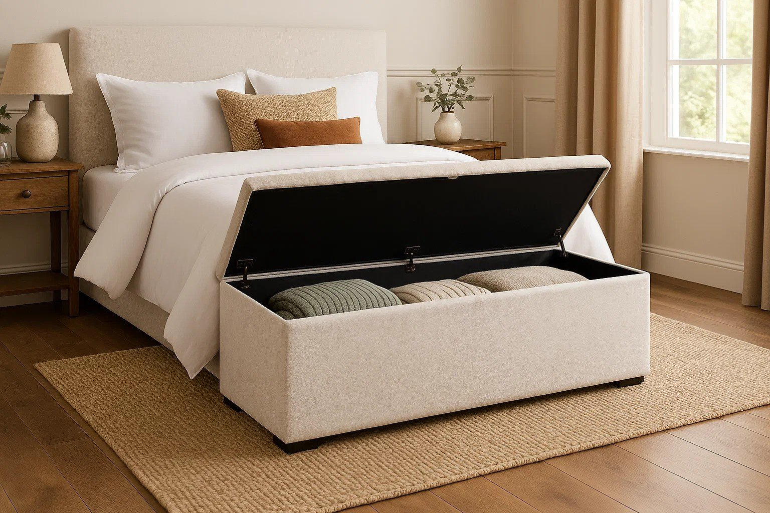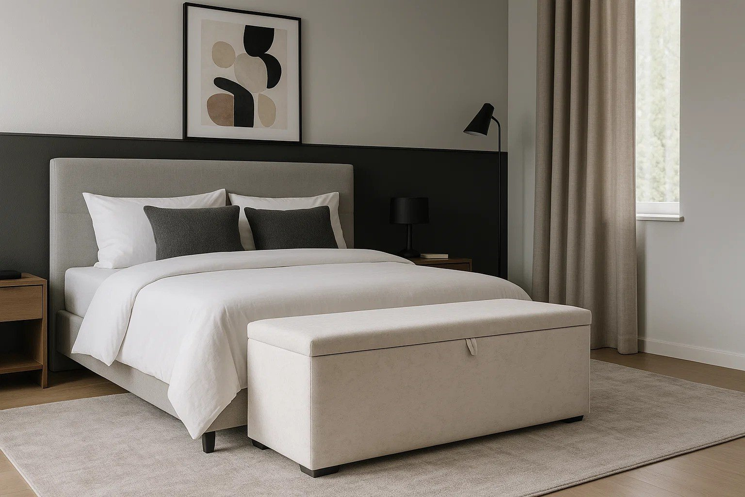 Bancheta Daria cu spatiu de depozitare adaugă un accent modern și rafinat dormitorului tau. Aceasta piesa de mobilier este ideala pentru a completa aspectul elegant al dormitorului. Este tapitata cu stofa de inalta calitate, ofera un loc confortabil pentru relaxare si poate fi amplasata la capatul patului sau într-un colt al camerei.