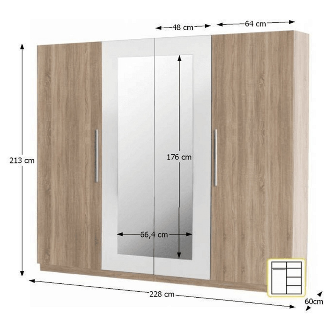 -1 x Dulap 4 usi 228 x 213 x 60 cm