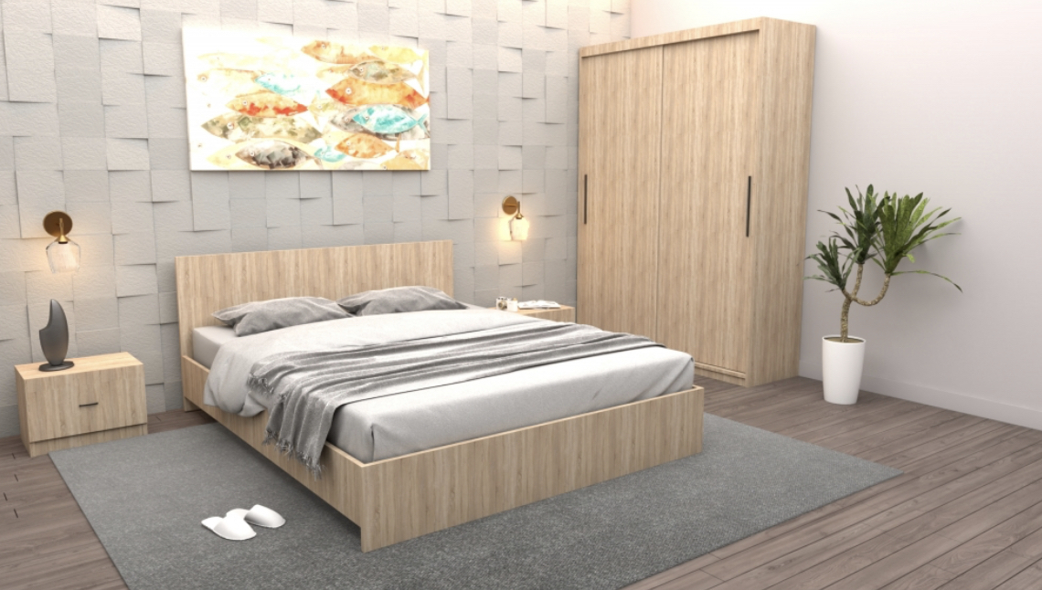 Dormitor: Mario SonomaAnsamblul este compus din:Pat: 160 x 200 cm Dressing: 180 x 200 cm Noptiere 2 buc : 40 X 30 X 35 cm Dormitorul este unul dintre cele mai importante incaperi din locuinta ta. ( nu contine saltea, lenjerie sau obiecte de decor) |
