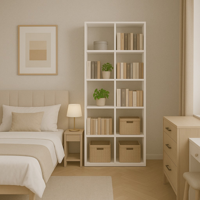 Structură deschisă, fără uși sau sertare Configurație:10 compartimente de dimensiuni egale Material: PAL melaminat de 16 mm grosime Dimensiuni 80*200*40