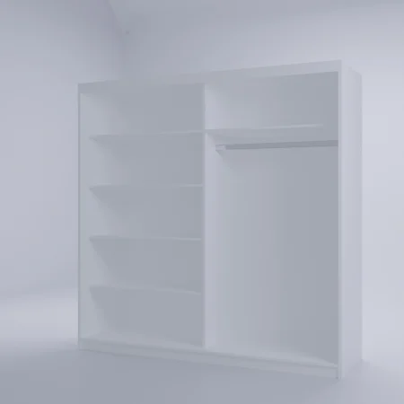 Acest dressing este o soluție practică și elegantă pentru organizarea hainelor și accesoriilor, fiind potrivit atât pentru dormitor, cât și pentru hol. Sistemul de uși culisante ajută la economisirea spațiului și oferă un acces facil la interiorul dressingului.