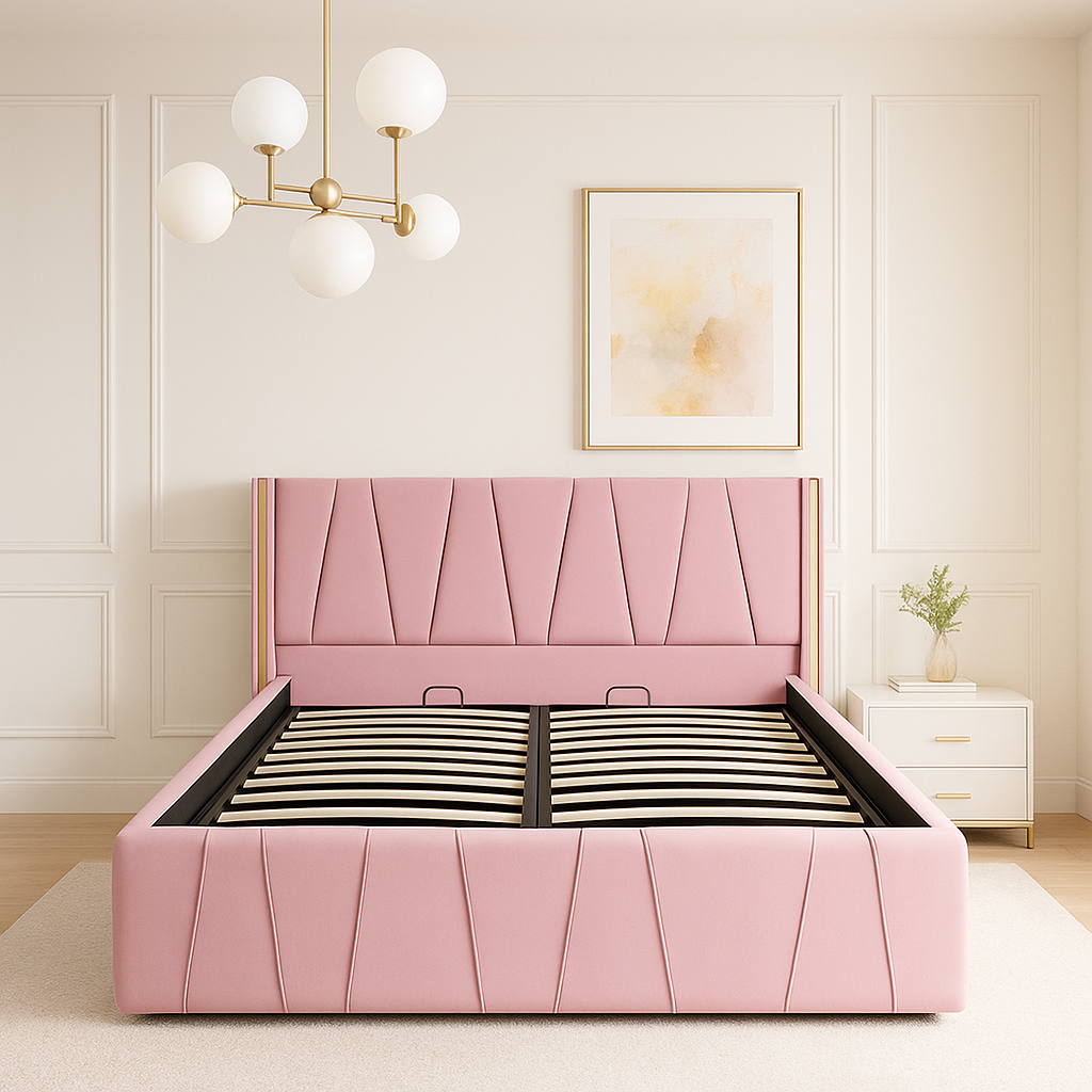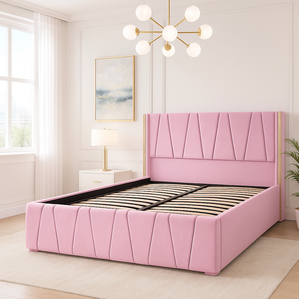Tapițat în material catifelat, plăcut la atingere și disponibil în mai multe culori moderne, acest model oferă un plus de confort și stil dormitorului tău.