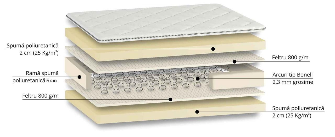 •  Spumă poliuretanică densitate 25 kg/mc de grosime 1,5 cm