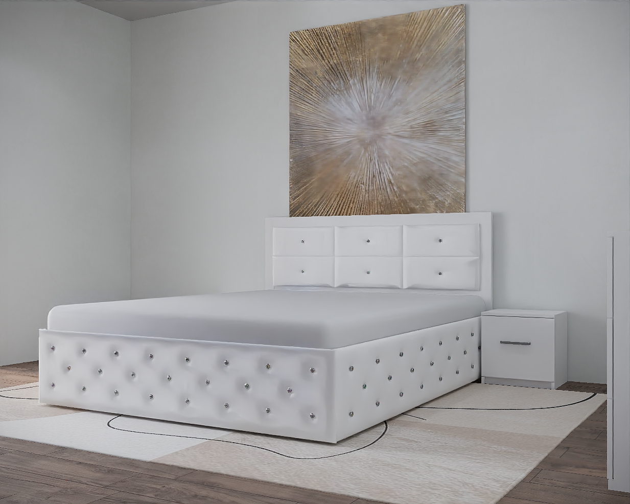 Set Pat Nemira New Alb cu Noptiere Si Comoda