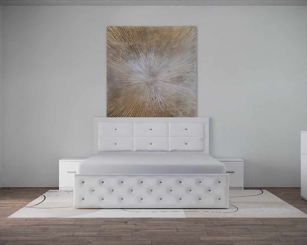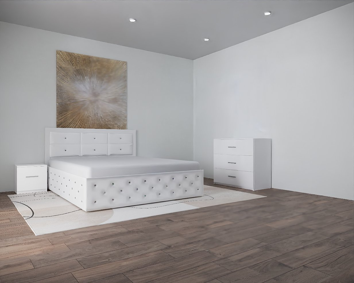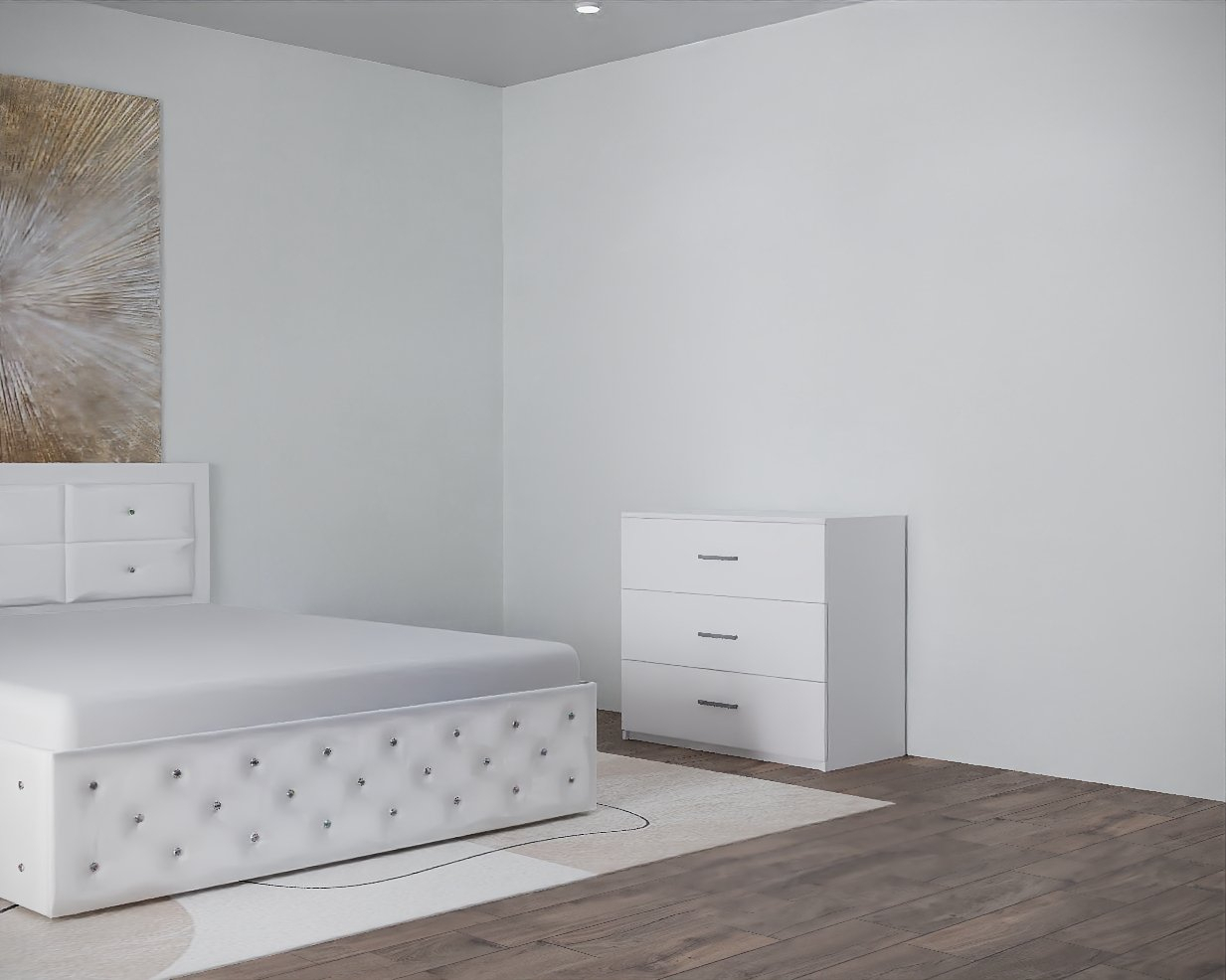 Set Pat Nemira Alb cu Noptiere si Comoda 160 x 200 cm
