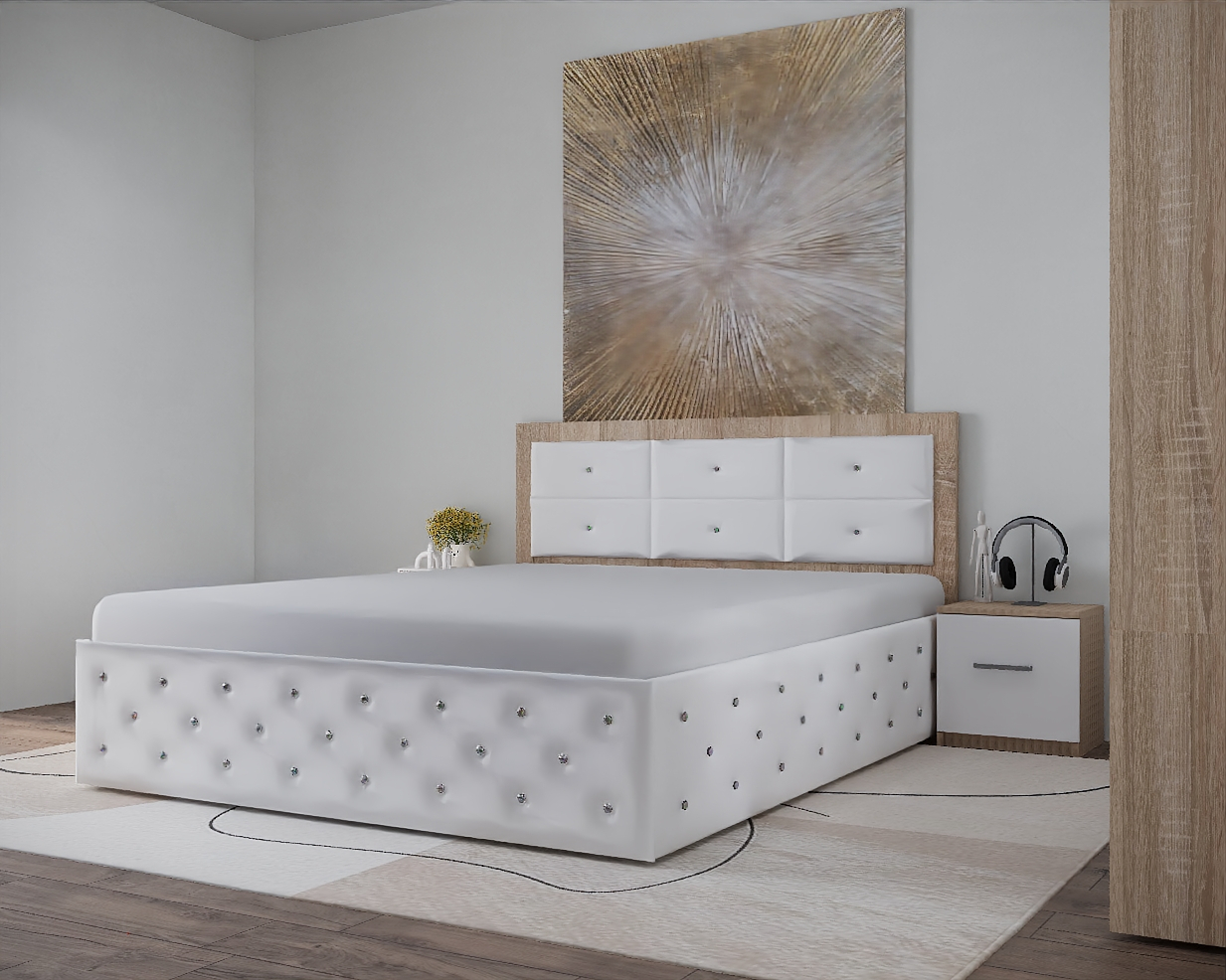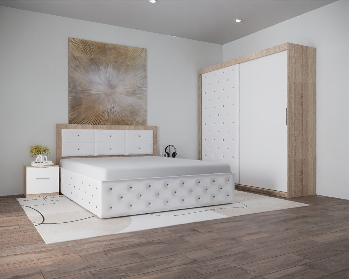 Set Pat Nemira New Tapitat cu Noptiere si Dressing Sonoma&Alb