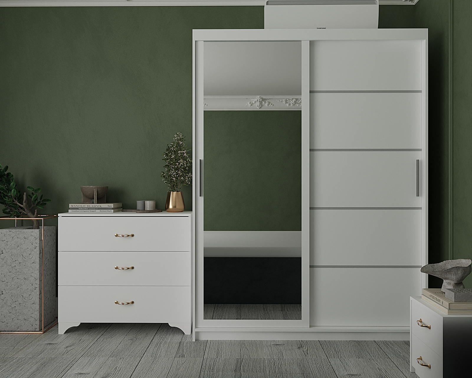 Ansamblul este realizat din PAL de 16mm, cant PVC si manere plastic.