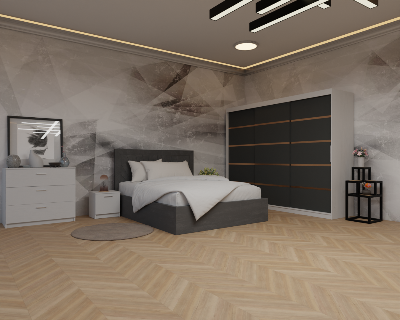 Dormitor: Lotus Pat Tapitat Dressing 250x200 Alb&Antracit 3 Usi