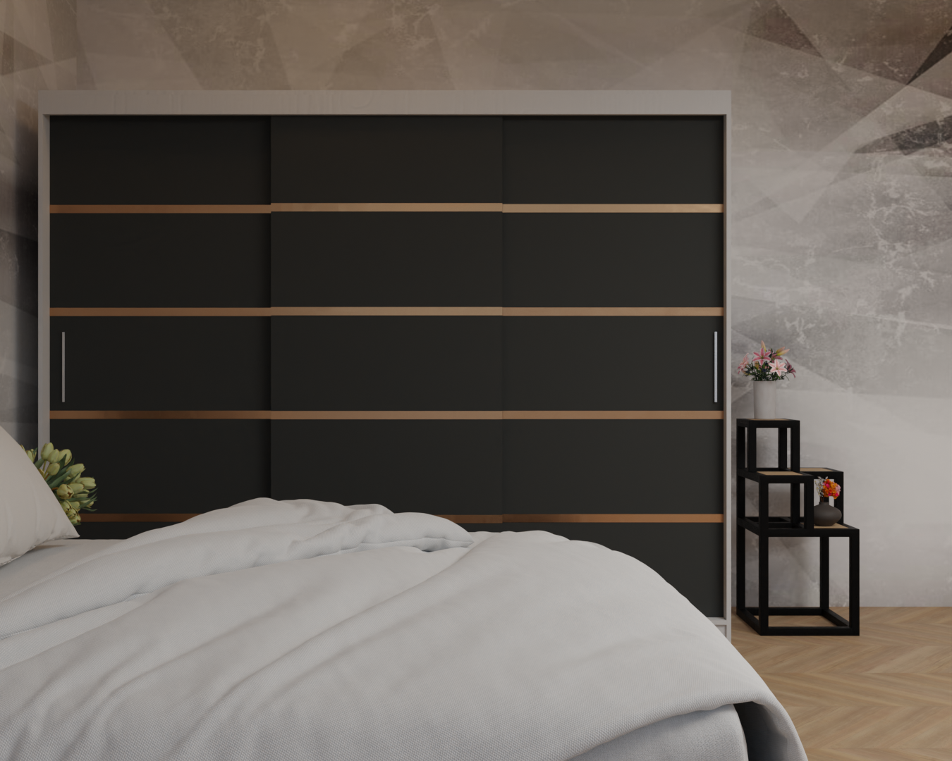 Dormitor: Lotus Pat Tapitat Dressing 250x200 Alb&Antracit 3 Usi
