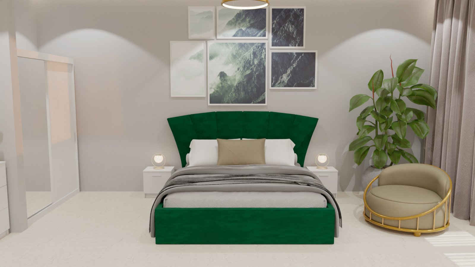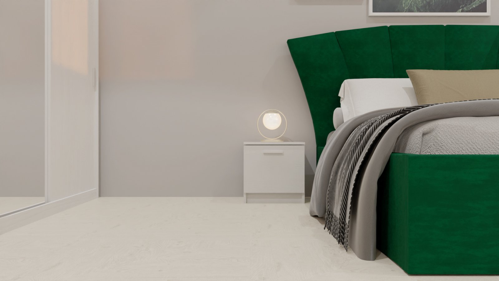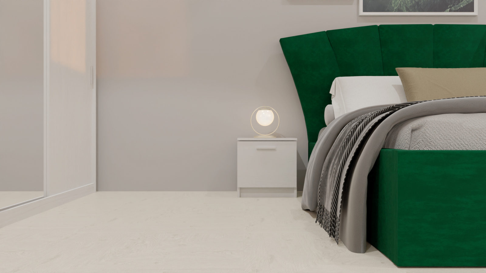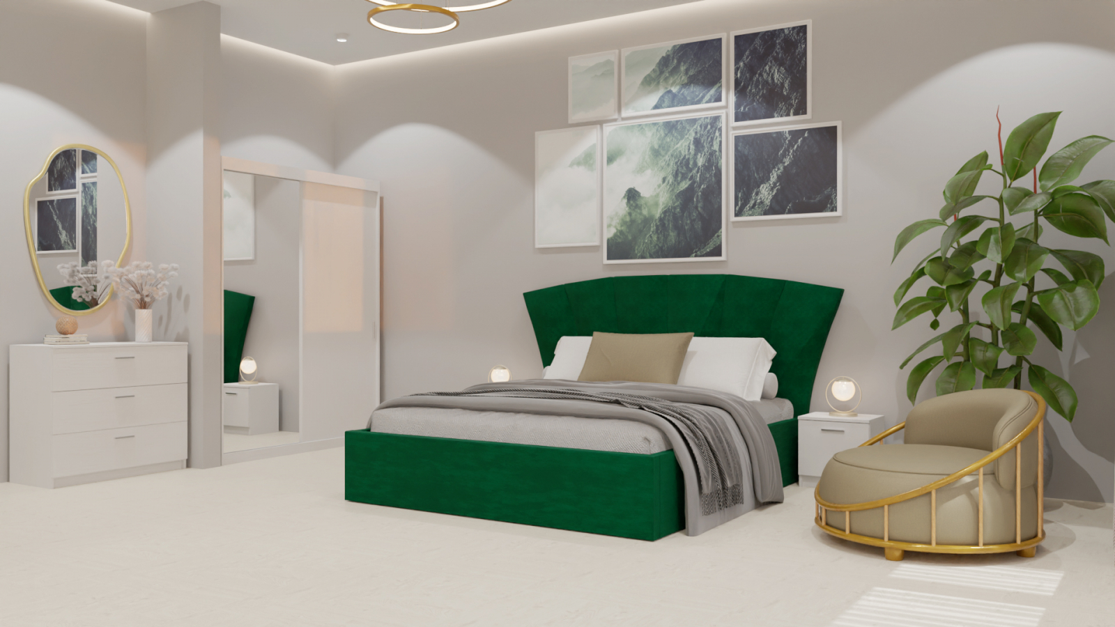 Dormitor Lucas Tapitat Verde 2 Usi Alb cu Oglinda