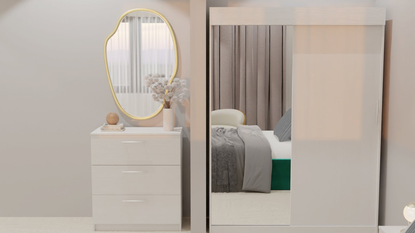 Dormitor Lucas Tapitat Verde 2 Usi Alb cu Oglinda