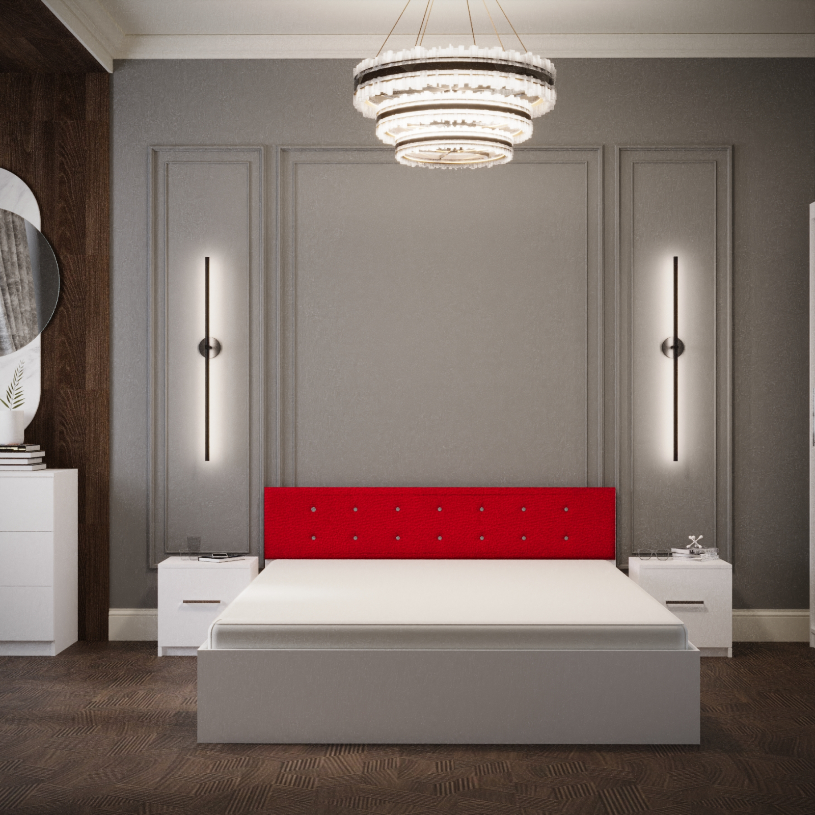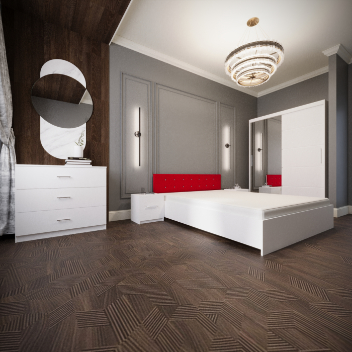 Dormitor Nemira Alb&Rosu Tapitat 2 Usi cu Oglinda