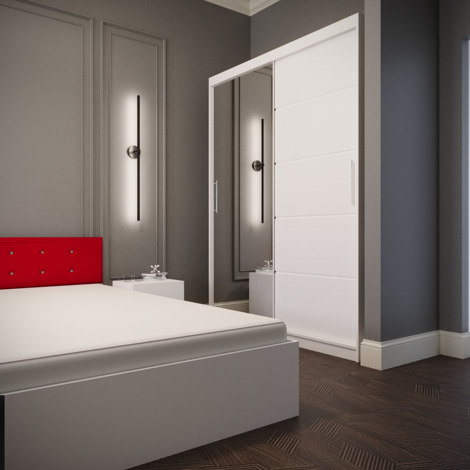 Dormitor: Nemira Tapitat Alb&Rosu 2 usi cu Oglinda
